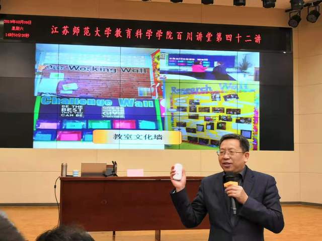 讲座伊始,高伟院长对朱旭东教授的到访致以诚挚的感谢与欢迎。朱旭东教授在讲座前阐明了他的研究背景与意图。朱旭东教授指出世界各国普遍地采用了形式各异的教室空间来培养人才,同时指出教室空间是一种文化,可称之为教室文化。接下来,以衡水中学语录为例,引出教室文化的不同表现形式,指出教室文化的内涵,即教室文化不是孤立的个体建构的结果,而是由教师和学生共同创造的精神、物质、制度、行为文化。朱旭东教授向我们分享他的研究方法——“picture-analysis”研究法,并向我们展示了他自身出访各个国家所拍摄的不同的教室文化墙,归纳出不同国家有不同教室文化特点,但都具有东方国家的特征。随即朱旭东教授概括总结了中国“九个一”的教室文化特征并为我们解读了中国教室文化的公共性、统一性、私人性和权威性四个特征。朱旭东教授引导我们思考中国教室文化背景下隐含的学习形式并与同学们热烈讨论在“九个一”的教室文化情境中学生学习是如何开展的。通过互动交流得出我国的学习形式主要体现为集体性个人主义学习模式,强调这种模式是为了培养学生的个体社会性、团队合作性及交往性等目的。同时这种模式又反映出集体性个人主义学习、集体性集体主义学习、个体性集体主义学习、个体性个人主义学习等四种表现形式。在最后的阐述中,他说明了教室文化的差异性与集体性个人主义学习之间的区别,并建议从文化民族志、社会建构主义、整合语言和工具模式等方面来多样性的丰富教室文化。在提问时间,朱教授认真的聆听问题和耐心的回答,肯定了问题的价值,并作了详细的分析。朱旭东教授为我院师生带来了一场生动活泼而引人发省的讲座,高伟院长对朱旭东教授的分享也致以高度点评,同学们均表示获益良多。