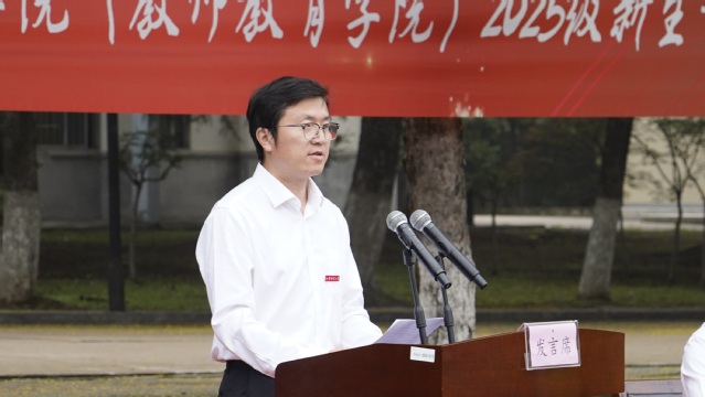 开学典礼在庄严的国歌声中拉开序幕。学院党委书记孟德会发表致辞,代表学院对483名新生的到来表示热烈欢迎。他从“幸福生活、勇敢追梦、严格自律、善于沟通”四个层面,勉励新生既要追求学业精进,更要注重人格塑造、情怀培养和责任担当。孟书记强调,教育科学学院是学校师范教育的底色与旗帜,希望同学们珍惜大学时光、不负青春韶华,努力成长为有温度、有深度、有担当的教育人。