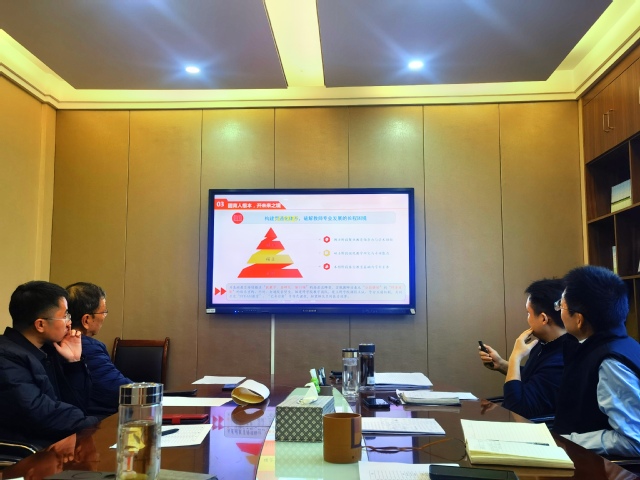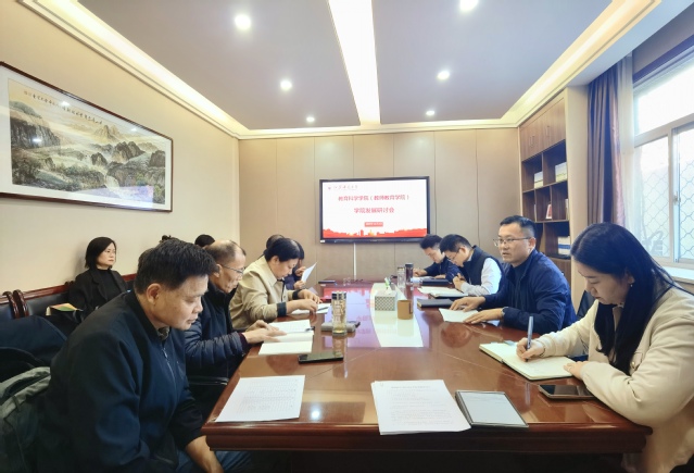 议程一:有序推进“十五五”发展规划。胡仁东教授介绍规划起草进度、数据采集情况及后期工作安排。通过调研6所目标院校相关指标,梳理专任教师、学科评价、科研成果等核心数据,初步明确学院定位,后续将结合巡察整改方案进一步优化发展定位与战略举措。
