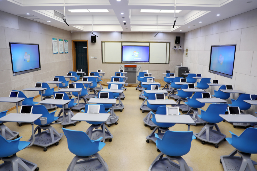 功能 介绍 | 智慧教室是探索未来教育形态的“样板间”,重点培养师范生的教育信息技术整合能力、课堂互动设计能力以及利用数据分析学情的能力,使其能够适应并驾驭日益智能化的小学和幼儿园教学环境。 室内配备交互式智能平板、多屏协作系统、无线投屏、常态化录播系统以及灵活的桌椅组合。师范生在此不仅能学习使用先进的智能教学设备,更能深入体验“以学生为中心”的探究式、合作式、混合式教学模式。学生可分组进行信息化教学设计、模拟智慧课堂授课、开展项目式学习研讨。 在计划课程之外,该教室作为教育教学研习室,面向师生提供全教学时段开放预约服务。 |