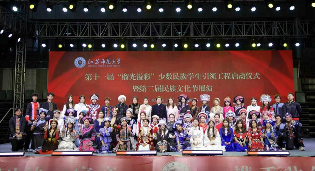 12月28日下午,江苏师范大学第十一届“榴光溢彩” 少数民族学生引领工程启动仪式暨第二届 “民族文化节” 展演活动隆重举行。教育科学学院作为少数民族学生数量最多并承建少数民族预科班的学院,携手商学院、法学院、数学与统计学院等13个学院,联袂呈上三支特色舞蹈惊艳登台,为这场民族文化盛宴添上了浓墨重彩的一笔。