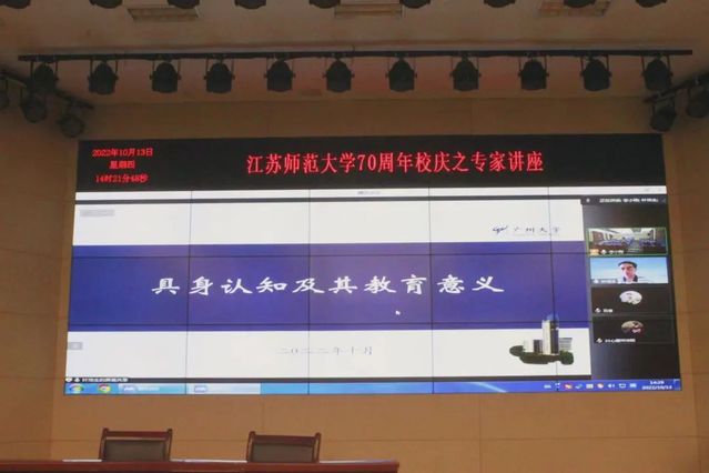 2022年10月13日下午14:30,广州大学教育学院心理学教授叶浩生教授应邀出席江苏师范大学70周年专家讲座,叶浩生教授为我院研究生作了主题为“具身认知及其教育意义”的讲座。本次讲座于教科院13号楼106报告厅举行,由文体部洪倩雯同学担任主持,我院党委书记贾林祥教授出席,我院21级和22级研究生参加。