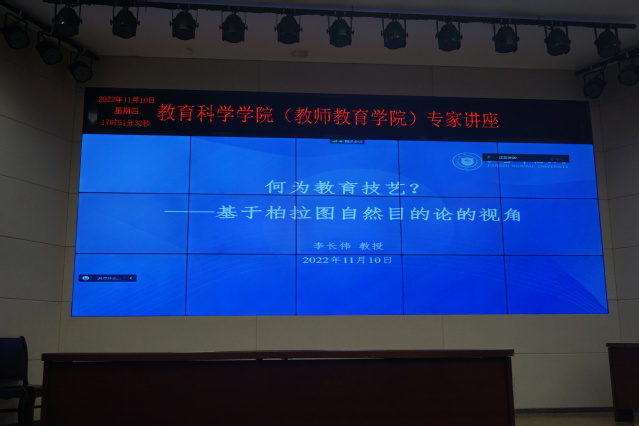 其次,李老师谈论了教育技艺与教师的关系,简单来说教育技艺是教师之为教师的规定者。什么是教师?就是拥有教育技艺的人,技艺规定着教师。李老师着重讲明了两点:第一点是对于教育技艺我们要有这样的一个基本把握,当谈论教师时,就是因为他有教育技艺。第二点,教育技艺还体现着教师自身的卓越和优秀。