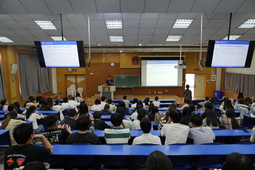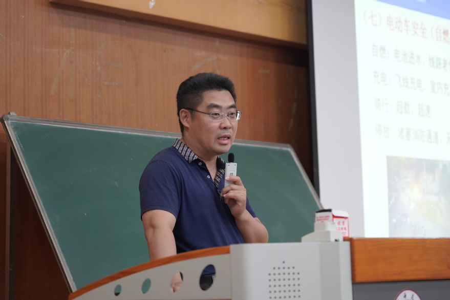保卫处巩岩副处长围绕校园安全防范工作要点,结合翔实的案例,从国家安全、消防安全、实验室安全、财物安全、生活安全、生命安全等方面进行了详细的介绍。特别是以国内部分高校突发典型火灾案例作为切入点,详细讲解了火灾的突发性和灾难性,并针对学校人员密集场所,从火灾事故预防、初期火灾扑救及应急疏散逃生等方面分别展开了论述。宿舍生活安全方面,重点强调了违规使用大功率电器所存在的重大消防安全隐患,并倡导各位学生安全员、学生干部积极发挥模范带头作用。最后提醒全体师生在日常生活中要学会“一懂三会”,即懂得本场所用火、用电、用油、用气火灾危险性,会报火警、会使用灭火器、会疏散逃生自救。