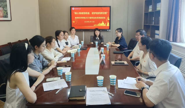 为切实做好毕业生党员教育,引导广大毕业生党员充分发挥先锋模范作用,做文明离校、安全离校、奉献社会的表率,教育科学学院于2023年6月13日下午,在13号楼204会议室召开“凝心铸魂强根基 逐梦启航新征程”2023届毕业生党员座谈会。院党委书记贾林祥、副书记王淑文、辅导员常蒙和9名毕业生党员代表参加了本次会议。