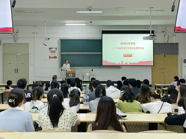 为了更好落实暑假学生留校教育管理工作要求,规范管理学生暑期留校工作,根据学校《关于做好暑期学生安全教育工作的通知》《关于做好2023 年暑期本科学生留校相关工作的通知》的要求,教育科学学院于2023年7月14日下午在17#200A教室召开暑期留校学生安全教育大会,学院党委书记贾林祥、副书记王淑文、研究生辅导员马雷鸣、本科生辅导员刘梦以及全体留校学生参加会议。