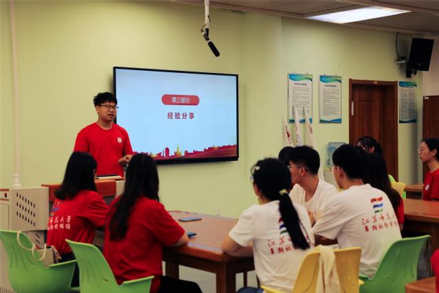 2022年暑期社会实践青葵支教团队长、徐州市暑期“三下乡”社会实践“先进个人”袁泉同学为即将出征的实践团成员分享宝贵的实践经验。他从降低期待立足实际、尊重优于评判、勿忘自我成长三方面,鼓励同学们在实践中脚踏实地,实现自我蜕变。
