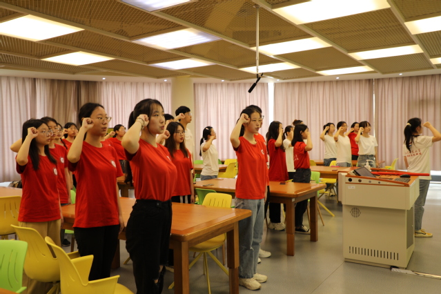 最后,在实践团成员代表戴卓娴同学的带领下,实践团全体成员进行了庄严宣誓,吹响了出征实践的号角。