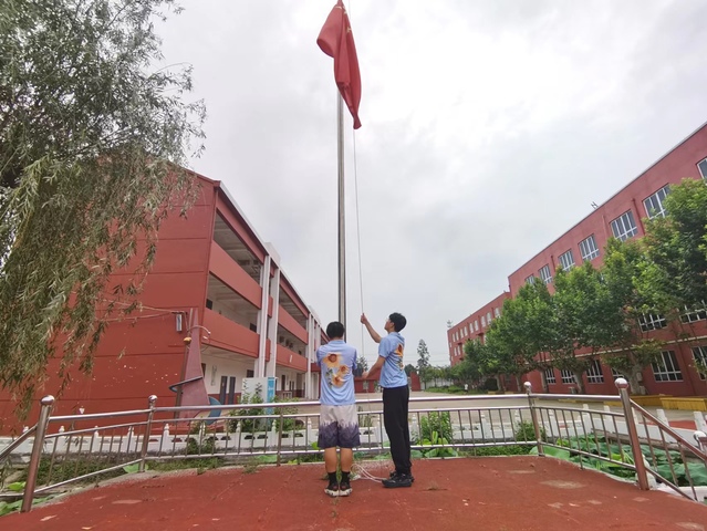 上午九时整,随着支教团成员党振延和尹宇航作为护旗手迈着整齐的步伐入场,全体师生怀着自豪和崇敬的心情昂首伫立,他们用坚定的目光注视着五星红旗缓缓上升,嘹亮的国歌合唱响彻学校操场。