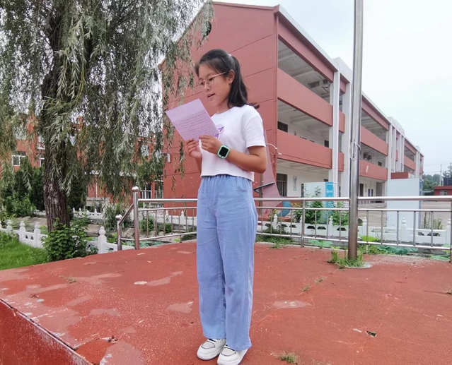 支教团团长钱瑜婷面向全体师生发言。她介绍了青葵支教团的历史足迹与成果,讲解了未来十天“爱心暑托班”的课程安排。她指出“支教是一种延续教育,我们看到的并不只是一个个满脸稚气的孩子,更是一群渴望知识的栋梁之材”,勉励支教团成员脚踏实地完成本次支教活动,在朝夕相处中相互促进、共同成长。