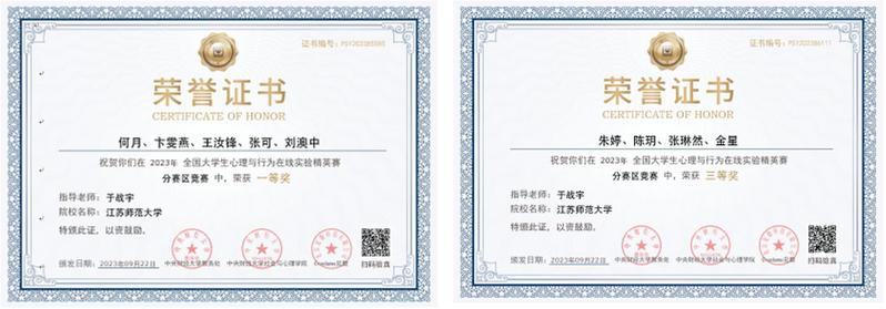 刘澳中:非常荣幸能够参加首届全国大学生心理与行为在线实验精英赛并获奖,感谢主办方的赛前培训和见数平台的支持,感谢于老师的悉心指导和鼓励,感谢何队长的带领和引导,感谢团队成员的互相帮助和配合。经过这次比赛,我对线上实验的优势和便捷性有了更多的认识,感悟到只要大家团结起来,很多事情也不是没有可能完成,方法总比困难多。
