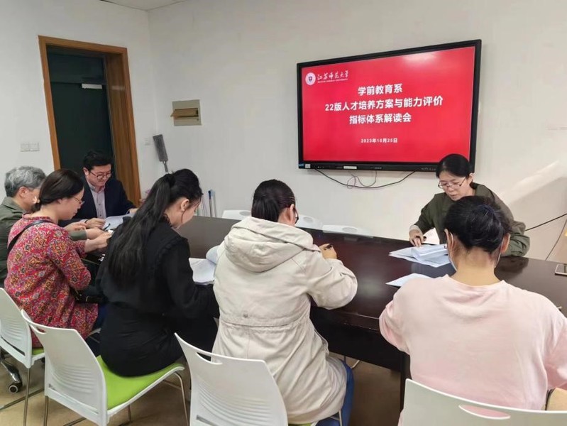 2023年10月25日下午两点半,学前教育系2022版人才培养方案与能力评价指标体系解读会在学前教育系119办公室召开,会议由学前教育系主任王志丹老师主持。本次会议旨在解读学前教育专业2022版人才培养方案,并对学生能力评价指标体系进行解读和讨论,为本科教学评估做准备。