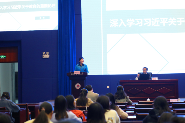 11月1日下午,中国教育报刊社党委书记翟博社长应邀在我校分析测试中心100A参加我院“百川讲堂”第六十五讲,为我院师生作了主题为“深入学习习近平关于教育的重要论述”的讲座。本次讲座由我校党委副书记岑红教授主持,我校宣传部孟召学部长、校团委老师、教育学院高伟院长、马克思主义学院及教育学院部分教师和学生参加。