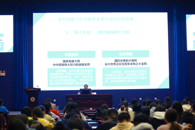 最后,翟社长讲述了深入学习习近平重要教育论述的思想方法和实践路径。他指出,学习习近平总书记关于教育的重要论述,关键是要学深悟透,并推动学习往深里走、实里走。讲座尾声,我校宣传部孟召学部长进行了发言总结,孟部长对翟社长思路清晰、内容丰富且指导性强的报告表示了衷心的感谢,本次报告会圆满结束。