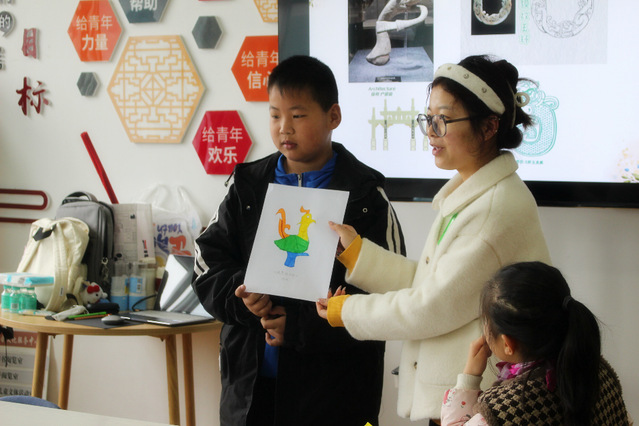 清晨时分,志愿者们在薄雾晨晖中走进陈庄社区居委会。满怀期待的小朋友们绽放出灿烂的笑容,热情迎接“大朋友”们的到来。志愿者们分四个主题带领孩子们开展了精彩纷呈的活动。“五块一毛,团结协作”体育活动中,通过培养孩子们的团队意识,碰撞出思维的火花;“楚汉文化,代代相传”文化体验活动中,志愿者提前准备了不同器皿的轮廓图,孩子们发挥想象力绘制图案和花纹,创作出独一无二的器皿,在绘画中领略楚汉文化的魅力;“星光闪闪,与爱同行”心理健康教育活动中,孩子们在星星纸上写下自己的梦想并为之命名,志愿者与孩子们一对一交流,鼓励他们勇敢追梦;“铭记安全,让爱放心”安全教育活动中,志愿者引导孩子们阅读安全知识小绘本、背记安全知识顺口溜、认识小型急救包物品、学习伤口包扎技巧等,提高他们的安全防患意识与自我保护能力。
