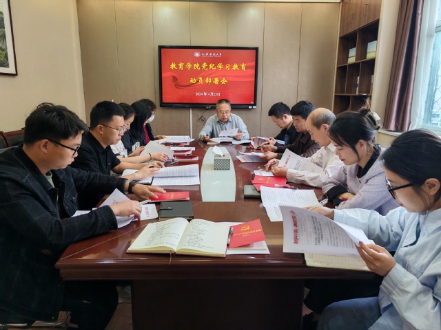 4月25日下午,教育科学学院召开党纪学习教育动员部署会议,学院全体党支部书记参加会议,会议由院党委张欣书记主持。