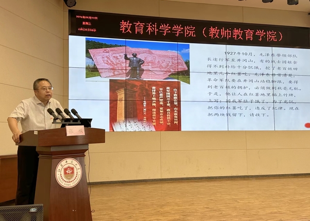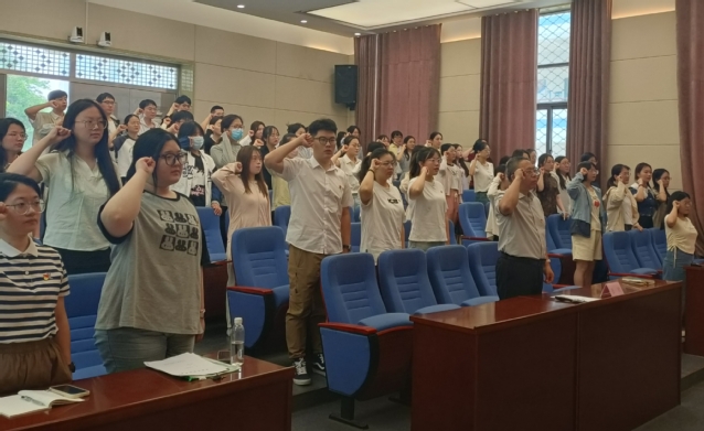 为切实做好毕业生党员教育管理工作,结合党纪学习教育部署要求,教育引导全体毕业生党员充分发挥先锋模范作用,做文明离校、安全离校、奉献社会的表率,教育科学学院(教师教育学院)于5月22日上午,在13号楼106报告厅召开“挺膺担当铸党魂青春笃行谱新篇”2024届毕业生党员大会。院党委书记张欣、副书记陈遥、辅导员马雪梅、常蒙和全体毕业生党员参加会议,会议由陈遥主持。