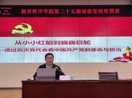 王丰书记作了题为“从小小红船到巍巍巨轮——透过历次党代会看中国共产党的使命与担当”的讲座。王书记带领同学们重温了百年建党史,介绍了每一届中国共产党全国代表大会的重要地位与贡献。他强调身处新时代,同学们要牢记新时代新征程中国共产党的使命任务,一是团结带领全国各族人民全面建成社会主义现代化强国,实现第二个百年奋斗目标;二是以中国式现代化全面推进中华民族伟大复兴。他希望同学们时刻努力,不断提高个人修养与能力,了解党的历程,加深对党的理解并衷心祝愿各位积极分子可以早日向党组织靠拢。