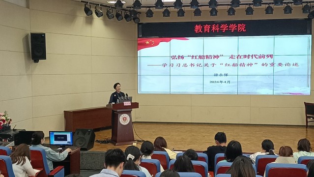 汤永怿校长作了题为“弘扬‘红船精神’走在时代前列——学习习近平总书记关于‘红船精神’的重要论述”的讲座。汤校长以习近平总书记在党的二十大报告中的一段讲话为引入,表达了总书记对新时代青年的热切期望、高度重视。并从十月革命和五四运动两件重大历史事件以及李大钊和陈独秀两位重要历史人物阐述了中国共产党精神之源,并指出开天辟地、敢为人先的首创精神是“红船精神”的核心,是推进共产主义事业进步和发展的不竭动力,是马克思主义政党的力量之源。然后让全体学员朗诵了毛泽东主席写的《七律·人民解放军占领南京》,带领学员们共同体悟中国共产党精神谱系中“红船精神”的内涵。汤校长希望同学们践行“首创”红船精神,激励自我,以实现中华民族伟大复兴为己任,把个人的理想追求融入国家和民族事业中。