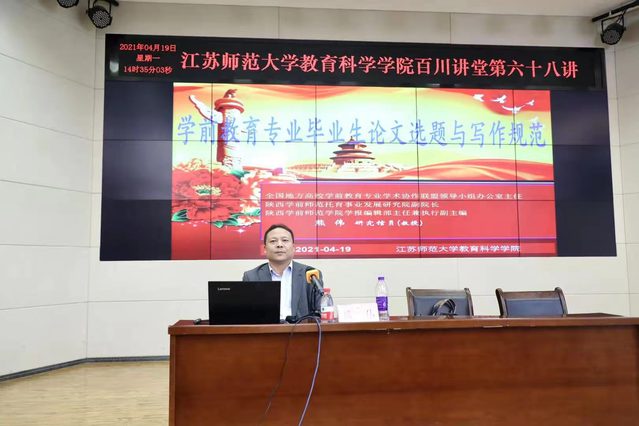 4月19日下午,陕西学前师范学院熊伟教授应邀在13号楼106报告厅参加我院“百川讲堂”第六十八讲,为我院师生作了主题为“学前教育专业毕业生论文选题与写作规范”的讲座。本次讲座由我院学前教育系主任胡晓艳教授主持,我院部分教师和学生参加。