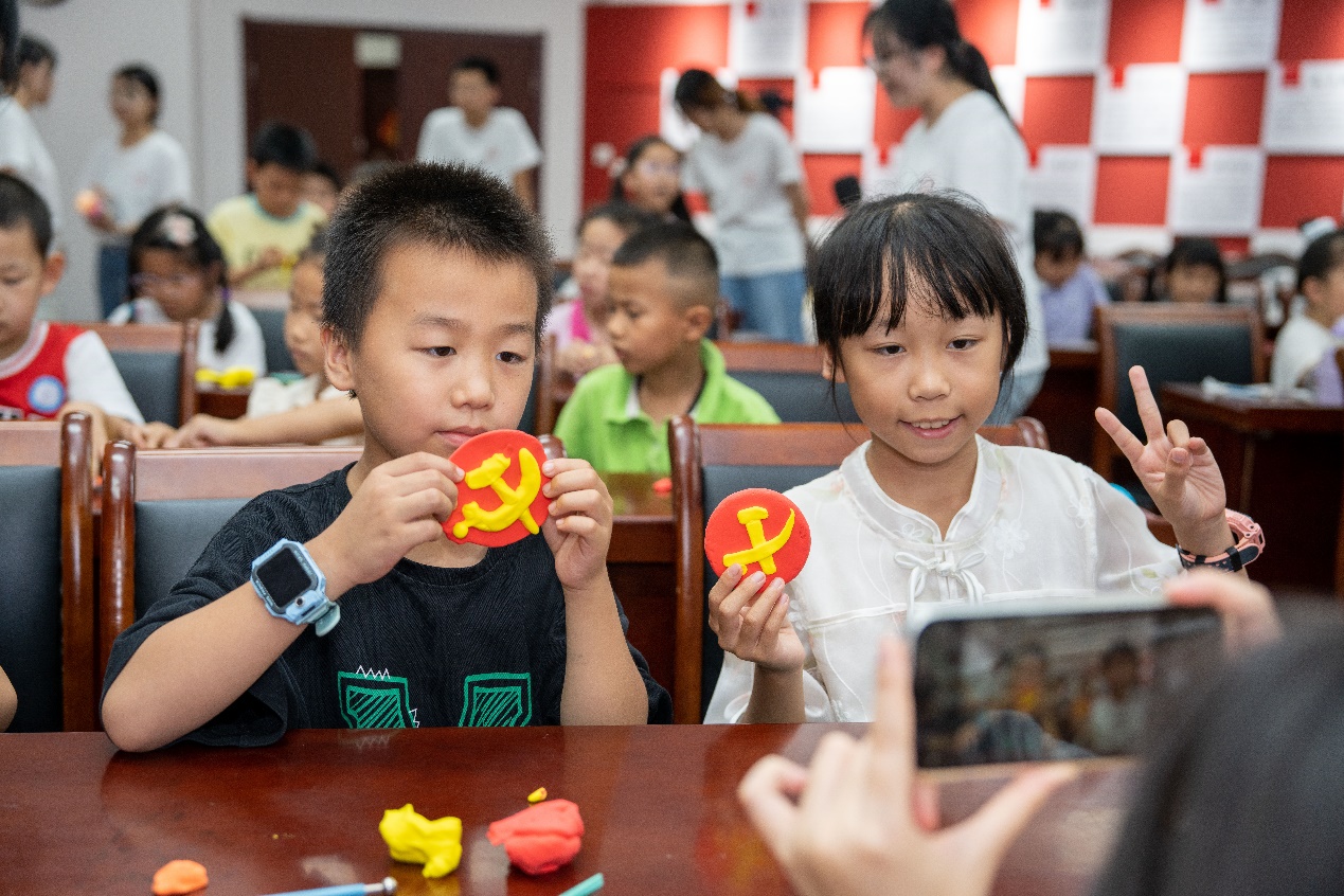 针对青少年儿童的年龄特点,宣讲团积极创建第二课堂,创新话语表达方式,以喜闻乐见的形式传播西柏坡精神,让学生愿意听、听得懂、能领会。宣讲团创新性提出了“听、说、唱、画、演”多感官运作的独特宣讲模式,涵盖理论宣讲、故事续说、童声合唱、地图绘制、情景互动多种形式,提高宣讲的互动性、深入性、可接受性,让西柏坡红色文化深入人心。同时,结合学校所在地本土文化,充分发挥社团特色,打造多样化课堂,如“重温光辉党史”红色剪纸活动、“传统文化创新之道”非遗漆扇制作、“党徽熠熠照心间”超轻粘土课程、“西柏坡的王二小”折纸课程等,寓教于乐,在趣味课堂中激发对红色文化的热情,走“新”更走“心”。