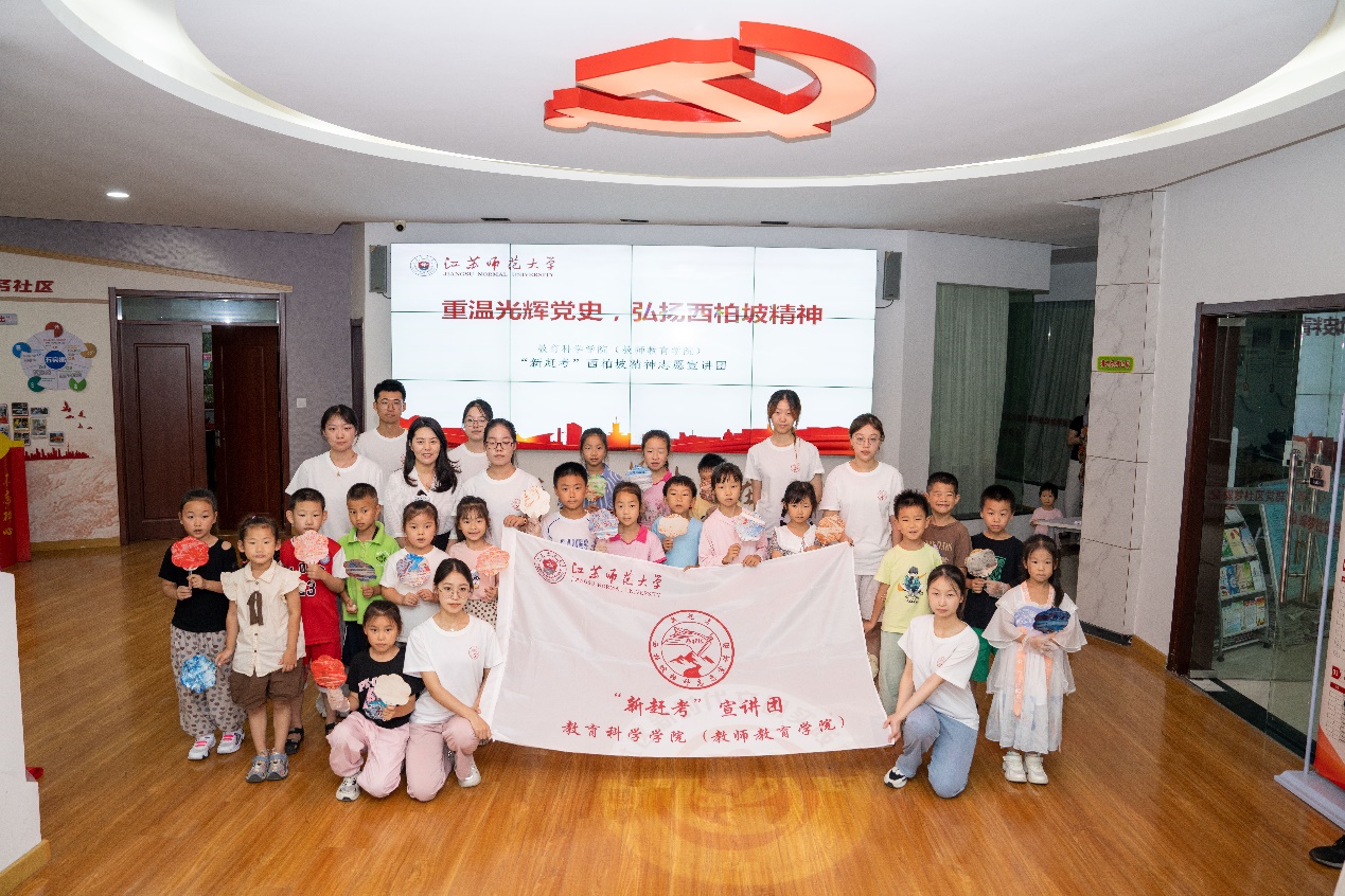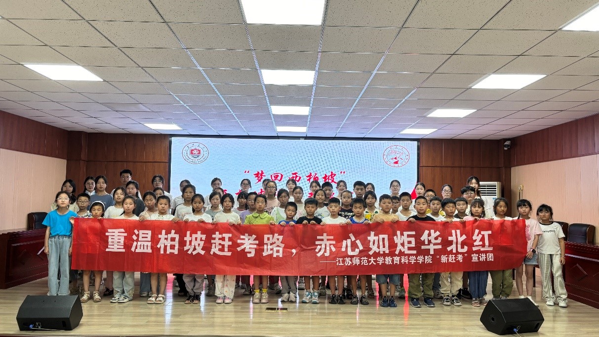 为深入学习贯彻习近平新时代中国特色社会主义思想和党的二十大精神,弘扬西柏坡精神,传承红色基因,引导和帮助广大青少年上好“大思政课”,江苏师范大学教育科学学院(教师教育学院)于2024年5月专门成立“新赶考”宣讲团,成功入选团中央2024年全国大学生西柏坡精神志愿宣讲团1000支队伍。